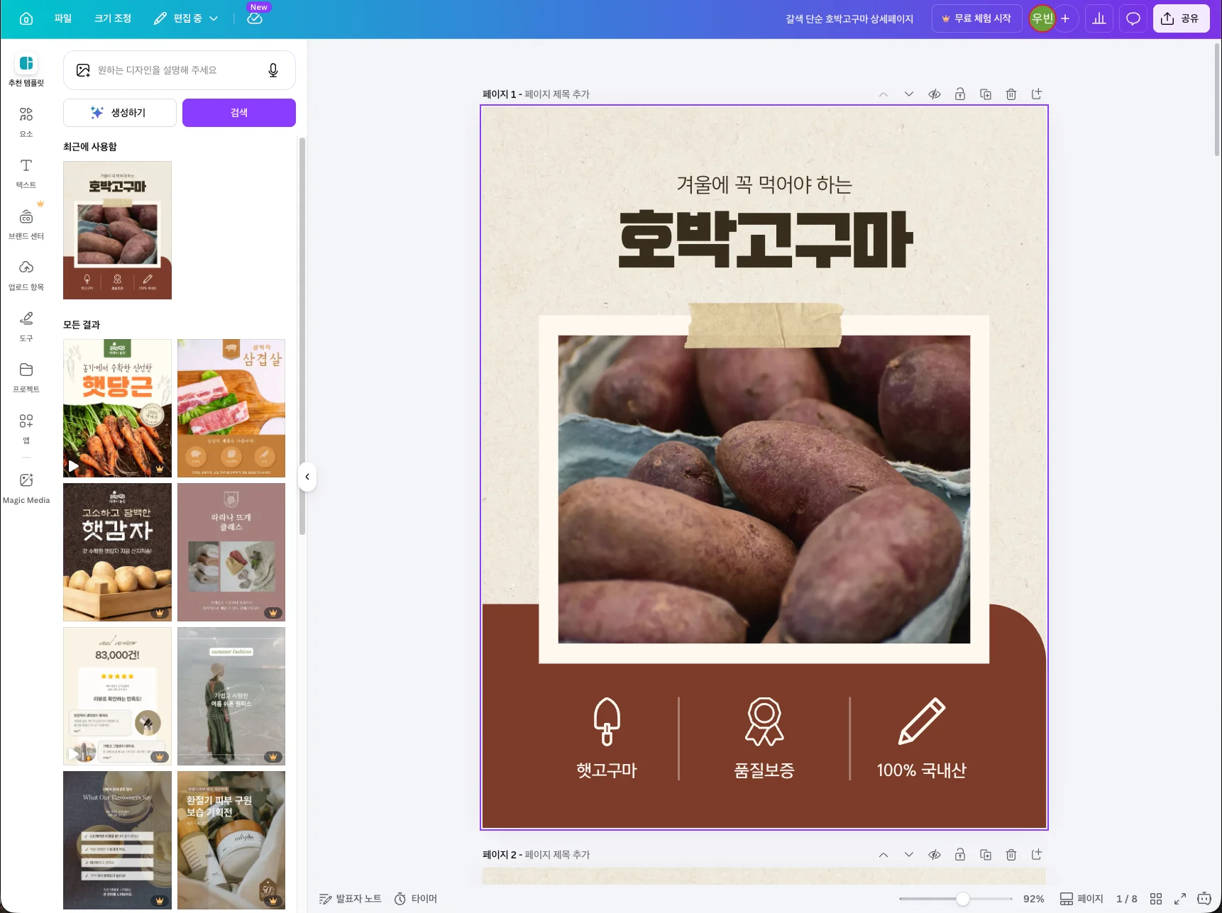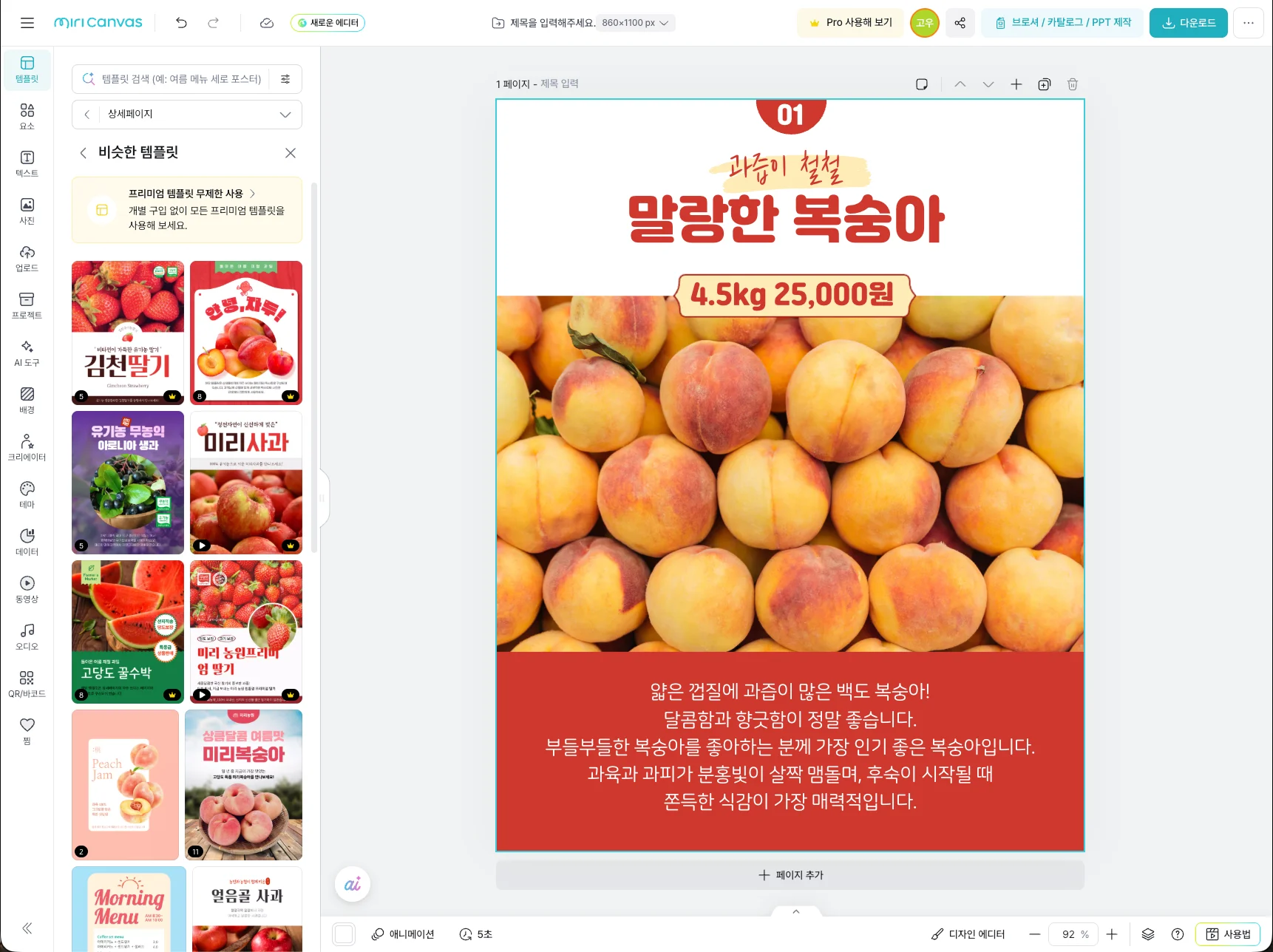 제품 테스트를 빠르게 진행해야 하는 초기 창업자: 디테일한 커스텀 기획보다는, 이미 완성된 범용 템플릿에 사진만 교체하여 속도감 있게 디자인 초안을 뽑고 싶을 때 적합합니다.